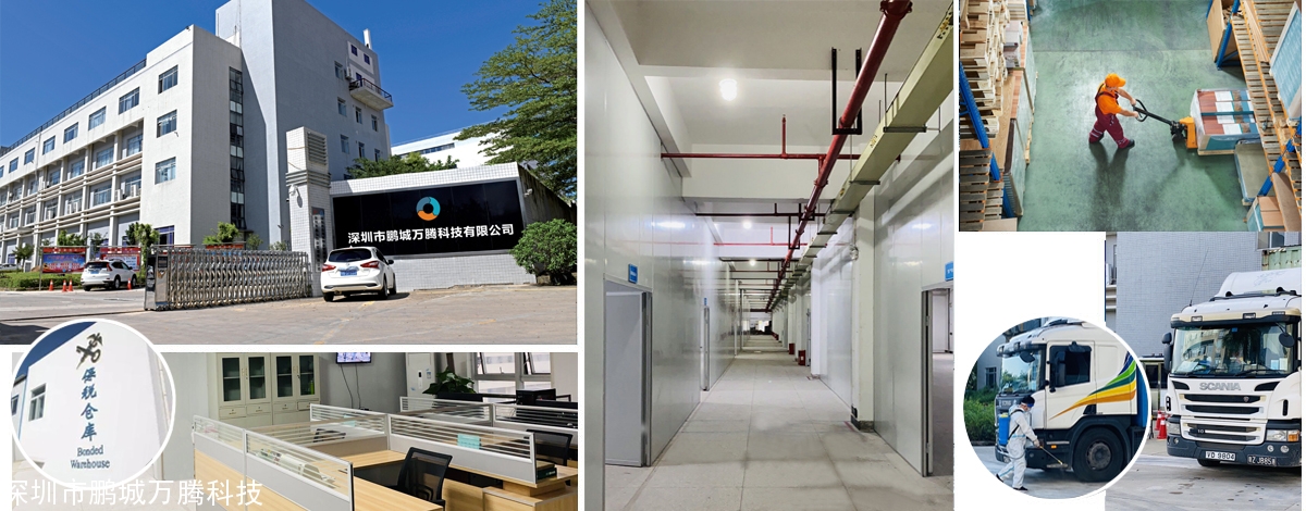 深圳市鹏城万腾科技有限公司位于坪山区深圳出口加工区,公司员工已拓展超过40人以上,在出口加工区拥有12000平方米的保税仓。